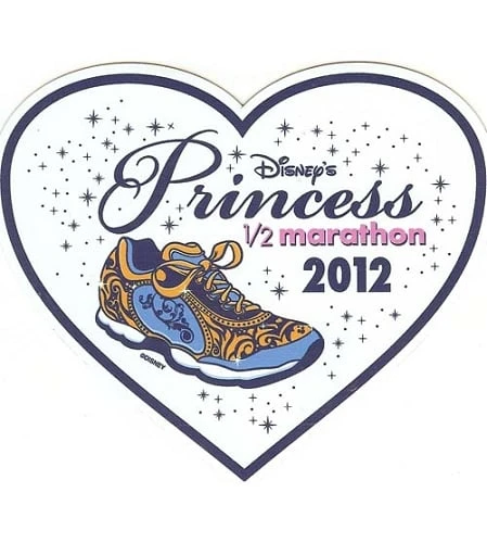 Show off your style with this one of a kind Disney Princess 1/2 Marathon automobile magnet. Able to be placed on your car, on your refrigerator, or anywhere that there is metal big enough to hold it, you are not going to be a ‘run’ of the mill with this magnet. In the shape of a heart and with a tennis shoe in it’s center, this is a treasure for any runner.