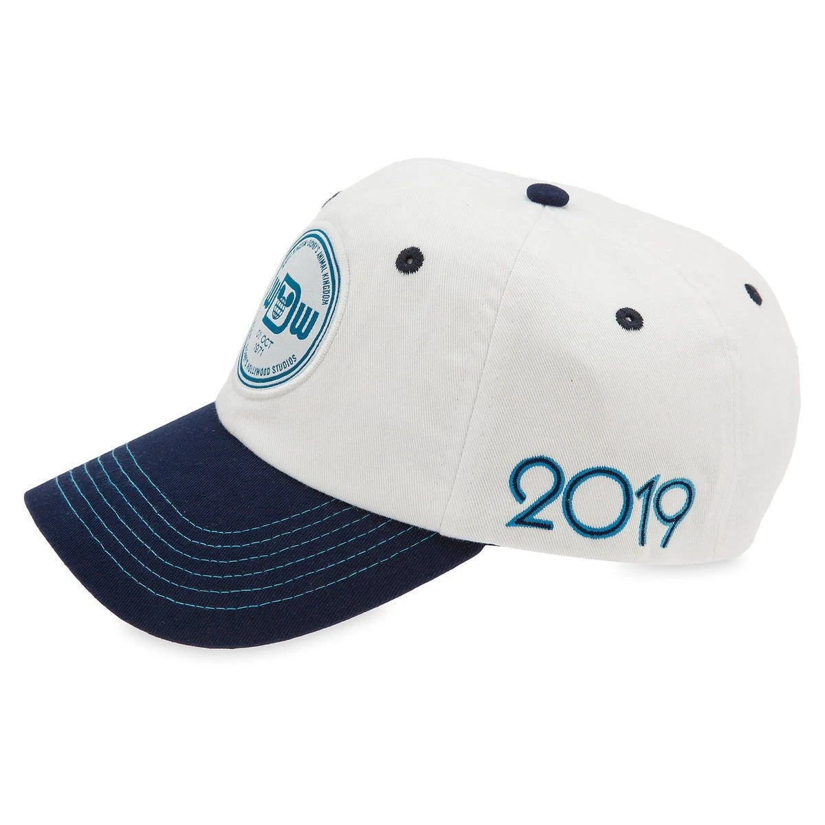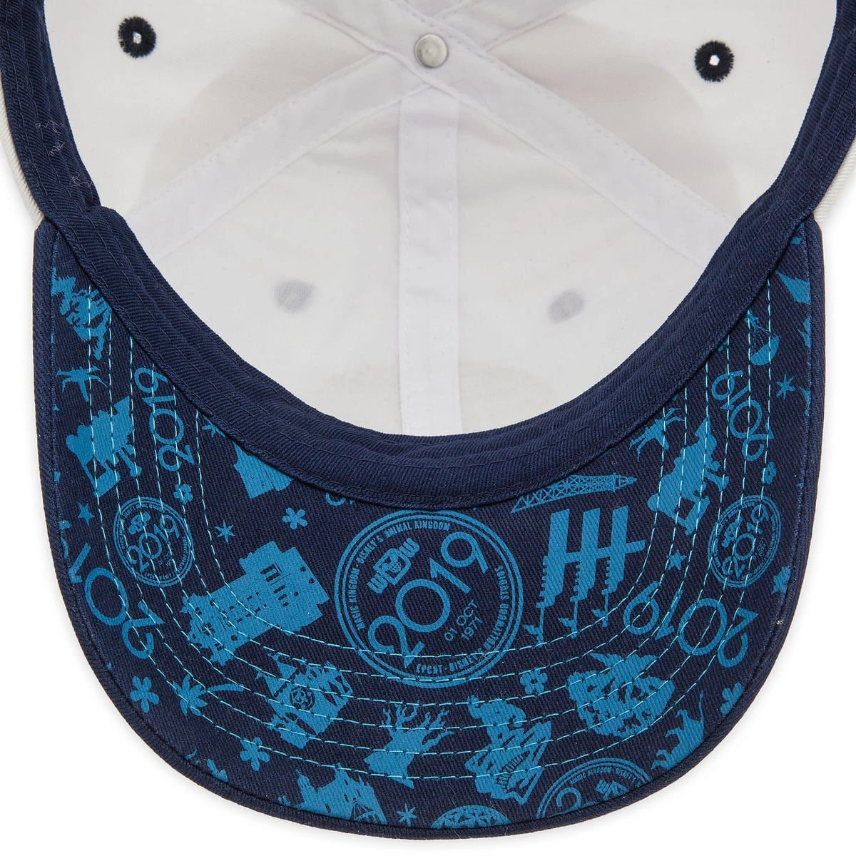 ”2019” and Walt Disney World attraction icons pattern on underside of bill