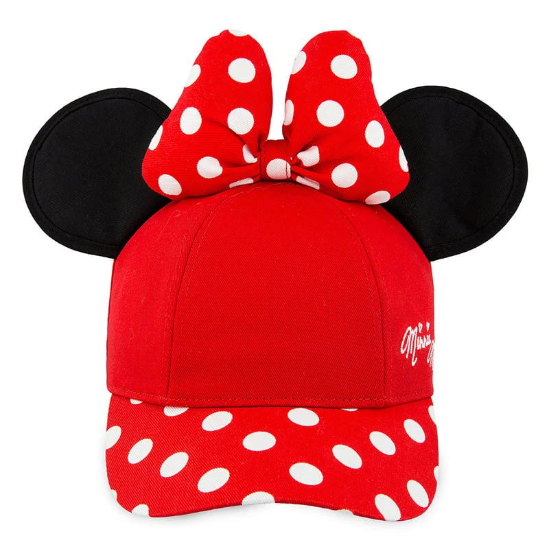 Take a swing around the park sporting Minnie’s polka dot baseball cap topped by ears and a bow, complete with an embroidered Minnie ”signature” and Walt Disney World Resort logo.