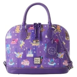 Covered in colorful designs inspired by favorite characters, Disney Parks landmarks, attractions and more, this satchel by Dooney & Bourke features the distinctive art style of Joey Chou. The spacious coated cotton bag has leather trim, pockets for all your daily essentials and includes a detachable leather tag celebrating the collaboration between Disney and the artist.