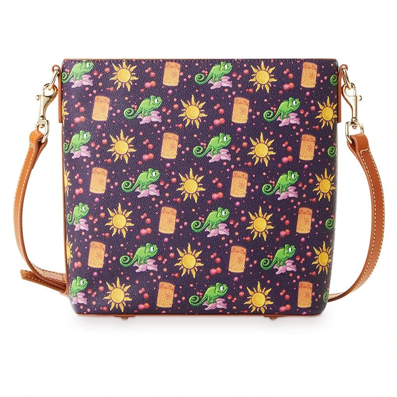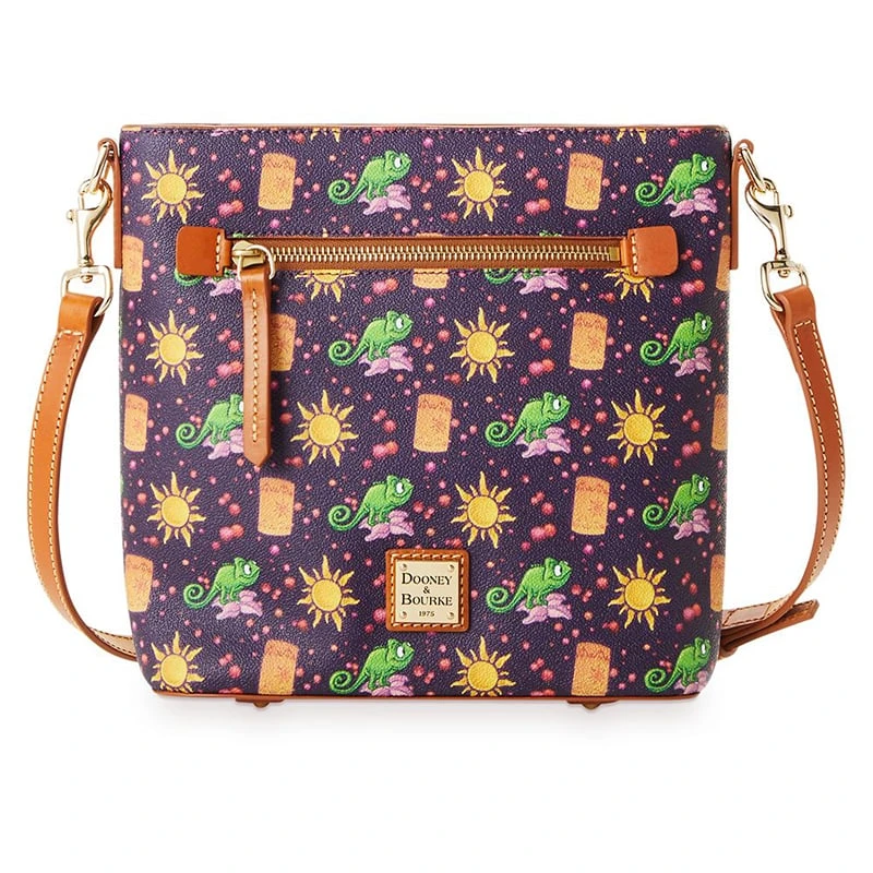 Lanterns, Pascal, and the sun light up the allover design on this Tangled crossbody. Created by Dooney & Bourke in celebration of the movie’s 10th anniversary, this fairytale bag includes adjustable shoulder strap for hands free convenience.