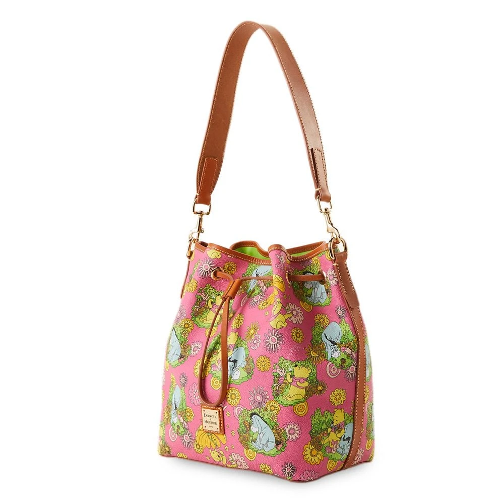 The Hundred Acre Wood is blooming as Winnie the Pooh and his friends frolic among the colorful flowers on this drawstring bag by Dooney & Bourke. Piglet and Eeyore join Pooh in the allover floral print of this coated cotton carryall that will keep all your everyday essentials in the pink.