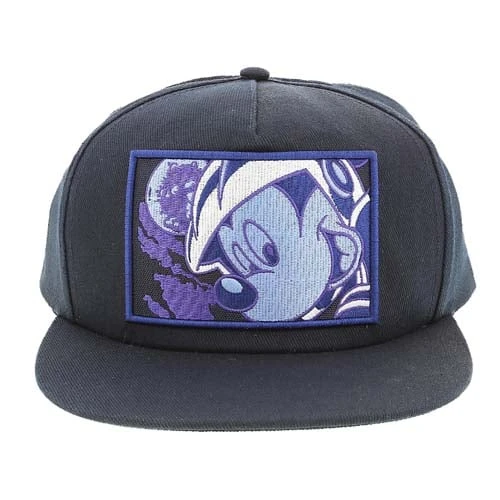 Astronaut Mickey smiling on an embroidered patch on the front of this flat bill baseball cap. Made in the cool comfort of 100% cotton.