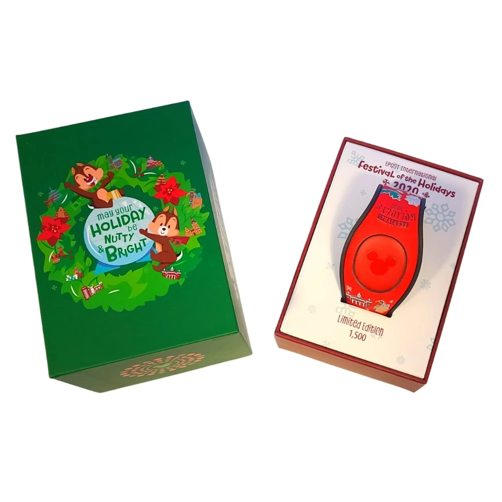 Celebrate the Epcot International Festival of the Holidays at Walt Disney World Resort with this MagicBand 2 featuring Chip and Dale who wish May Your Holiday be Nutty and Bright. With a simple touch, redeem FastPass+, enter parks, charge purchases to your room, and more!
