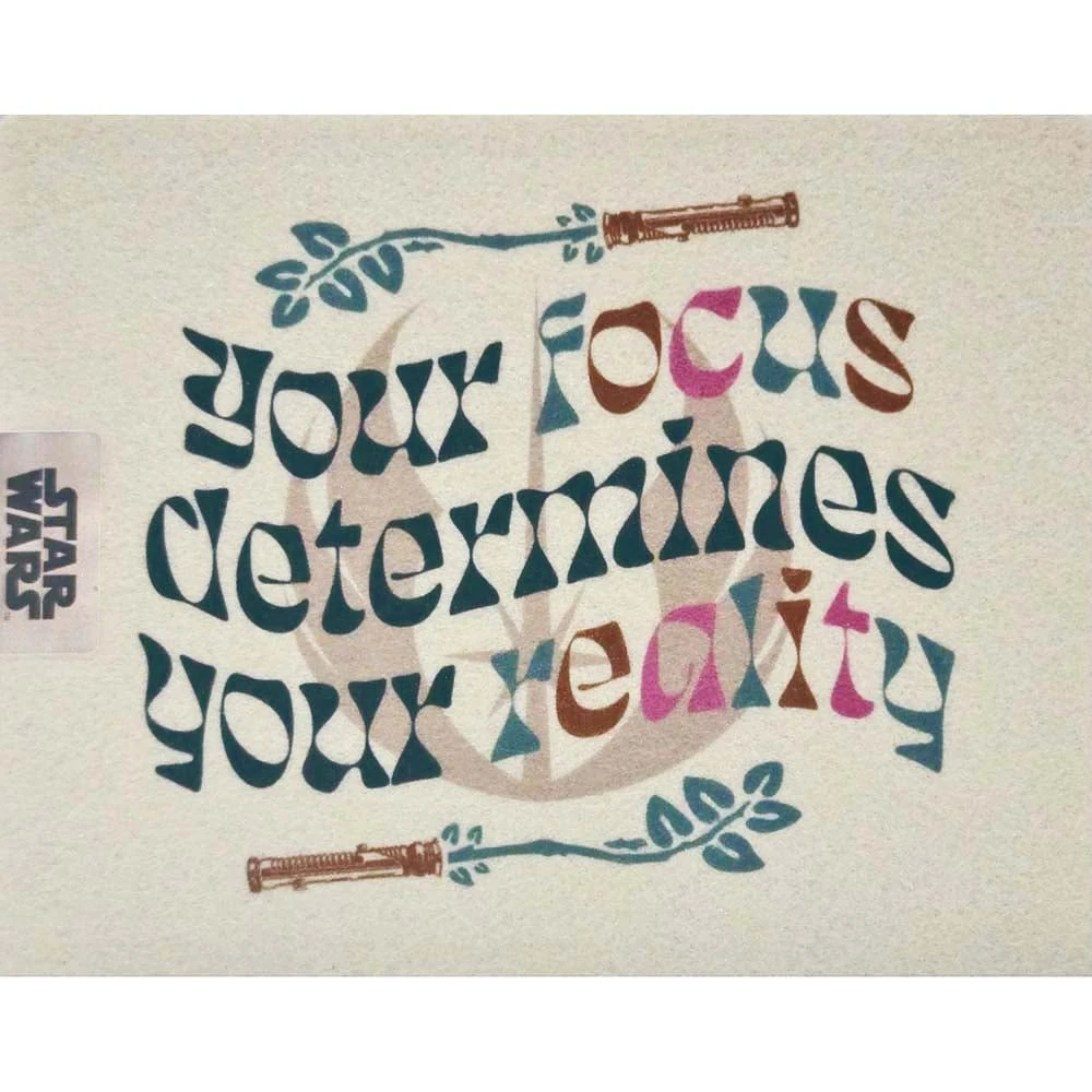 ”Your focus determines your reality” – Qui-Gon Jinn reminds Anakin as he trains to be a Jedi. This is the sentiment motivating you to crush your goals on this mouse pad featuring a psychedelic-style Star Wars Jedi symbol and lightsaber hilts illustration around and under the quote.