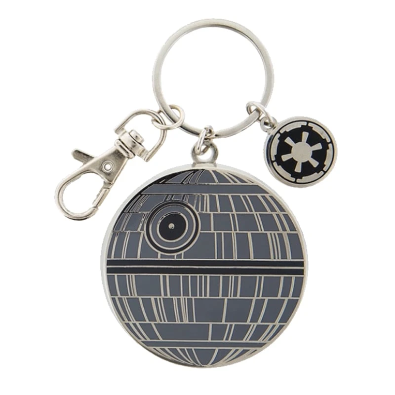 This key chain has a metal Death Star starship attached to ring with claw clip. The force will surely be with your keys for an out-of-this-world keychain!
